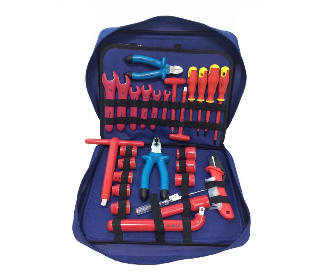 Набор изолированного инструмента электрика НЭУ-М3И до 1000В представляет собой профессиональный набор инструментов, позволяющий производить работы на электроустановках, станках, в шкафах, не отключенных от электрической сети. Основной инструмент, входящий в набор — отвертки, плоскогубцы, кусачки, ключи торцевые — изолирован. Благодаря изолированным рукояткам инструмент безопасен при работе под напряжением до 1000В.