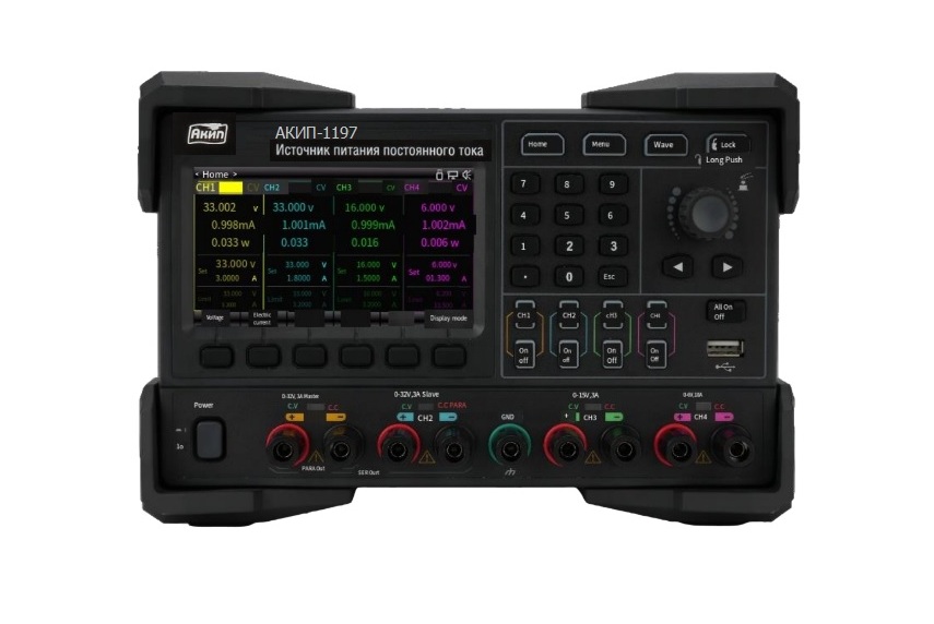 Особенности | дискретность установки 1 мВ/ 0,1 мА. Выходные клеммы на передней и задней панели. Вольтметр и амперметр – 5 разрядов. Внутр. память настроек -10 групп (х3 параметра). Режим параллельного/ последовательного объединения, автотрекинг каналов (Кан1/ Кан2). Расширенные функции - сложный профиль Uвых (List), задержка/Delayer, отображение формы напряжения и тока/ Monitor, USB-регистратор выходных параметров/Recorder (8 кВыб/с). Удаленное подключение нагрузки (4-пр схема Sense +/-). Режимы стабилизации тока и напряжения (CC/ CV). Защита от перенапряжения, перегрузки по току и перегрева (OVP/ OCP/ OTP). Низкий уровень шумов и пульсаций ( |