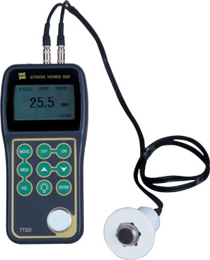 Ультразвуковой толщиномер TT 320 - специальная модель прибора для измерений по стали с температурой поверхности от -10 до 300 градусов по Цельсию, обладающая возможностью отображения текущего и минимального значения толщины (выбираемого в программном меню), встроенной памятью на 500 измерений, отображением результатов в миллиметрах или дюймах, индикацией степени разрядки источника питания, регулируемой яркостью подсветки ЖК-дисплея.